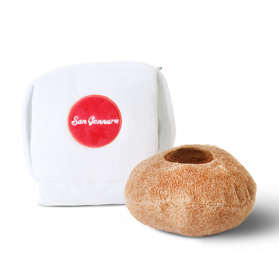 A sweet, squeaky treat! This plush bombolone comes in its own box - perfect for pups with a taste for fun.
